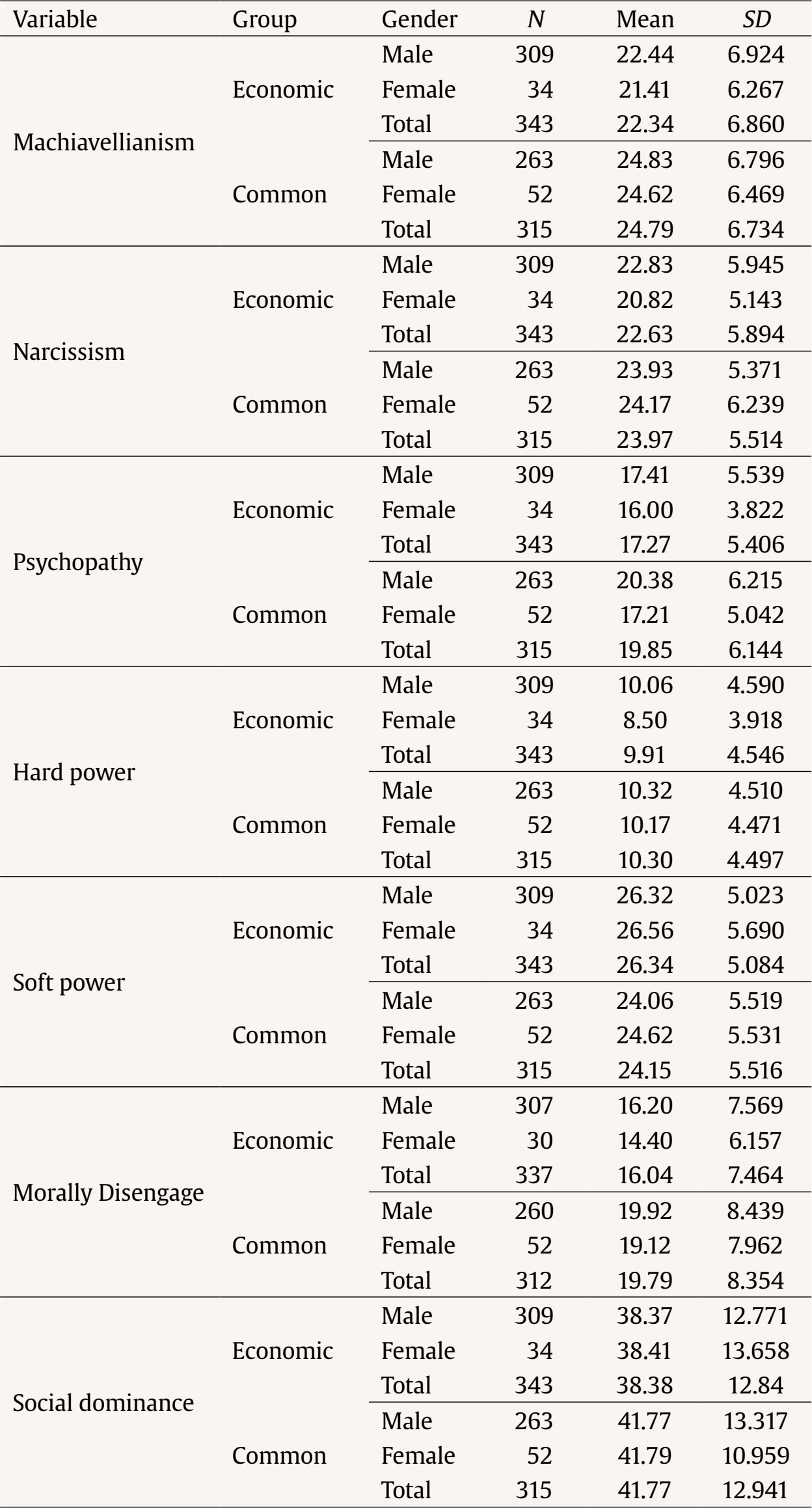 Tríada oscura, Delincuente económico, Poder, Moralidad, Dominio socialKeywords
