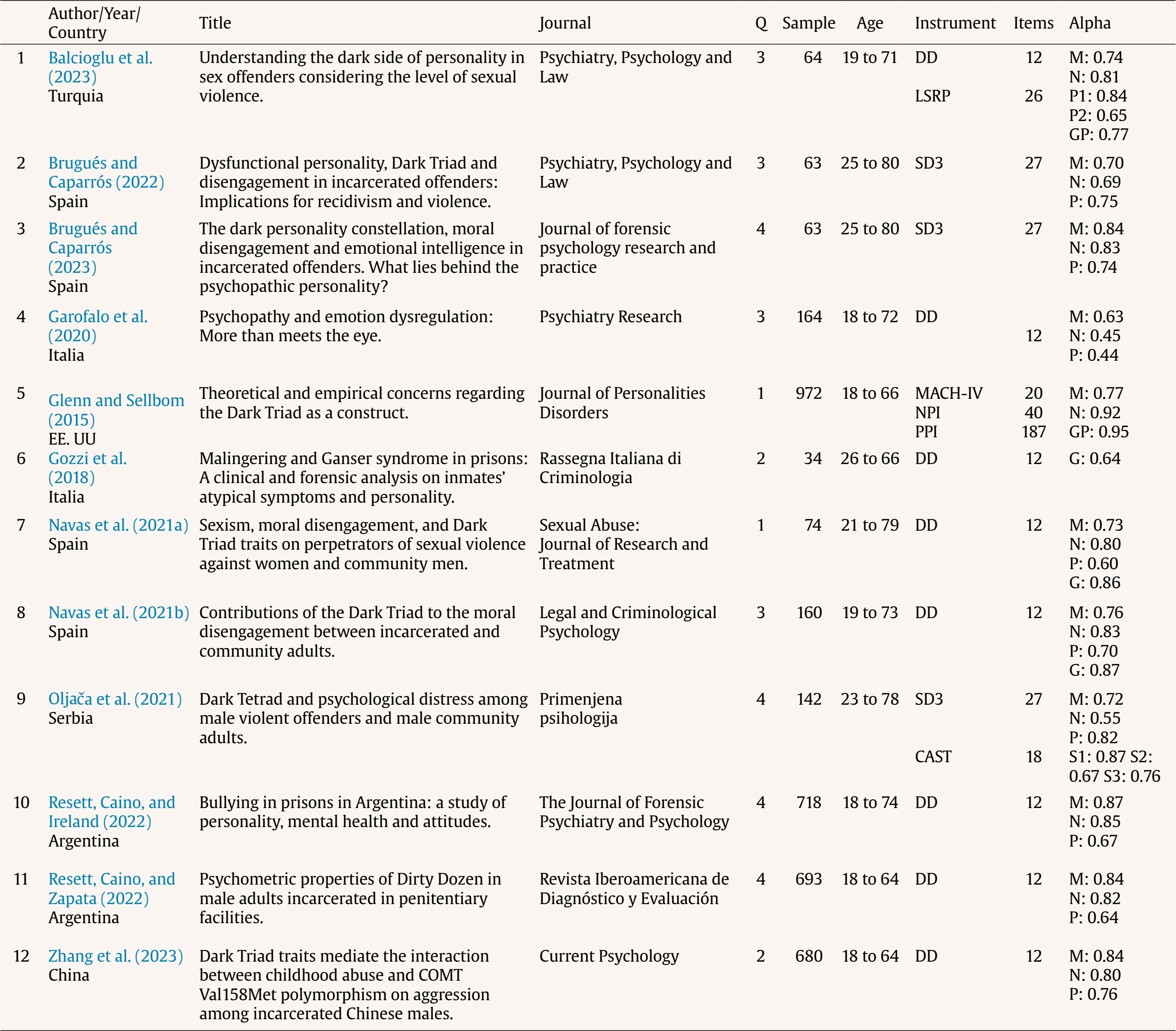 Cite this article as: Suevos-Rodríguez, I., Burgos-Benavides, L., Quevedo-Blasco, R., & Rodríguez-Díaz, F. J. (2026). Assessment of the Dark Triad in the Prison Population: A Meta-Analysis of Reliability Generalization. Anuario de Psicología Jurídica, 36, Article e260472. https://doi.org/10.5093/apj2026a5
