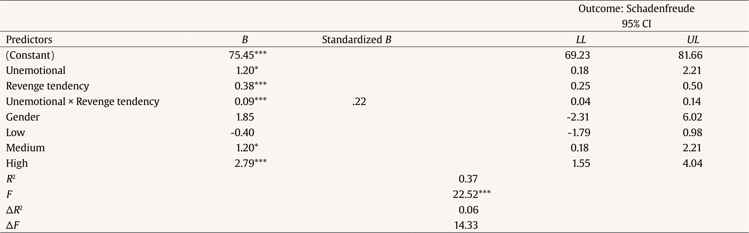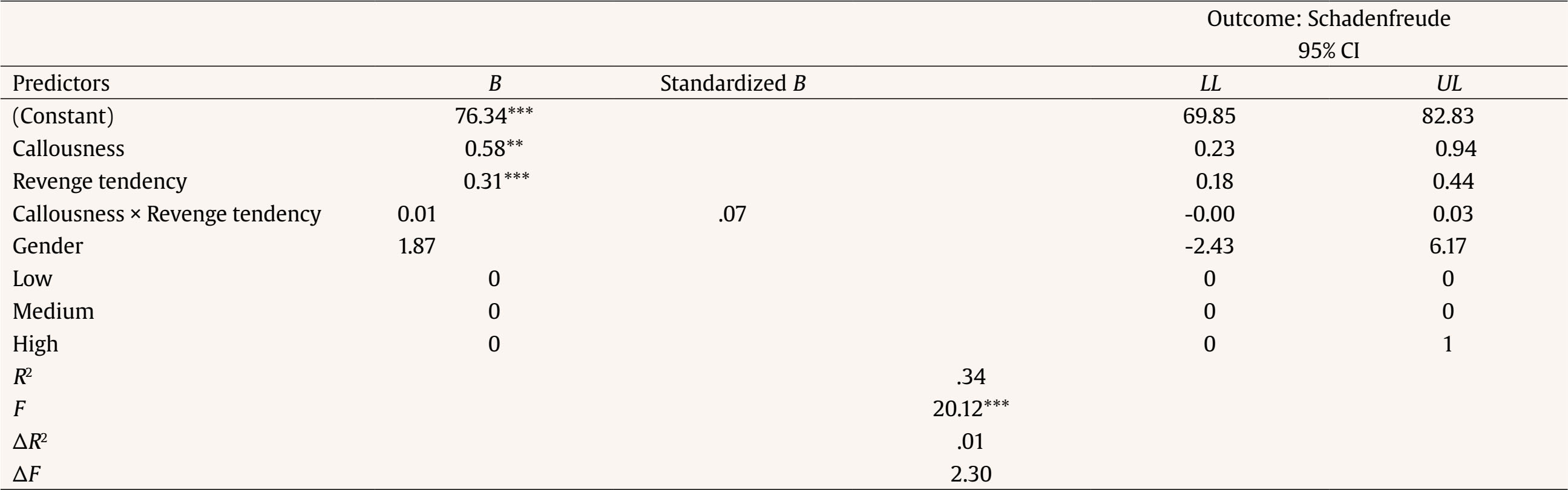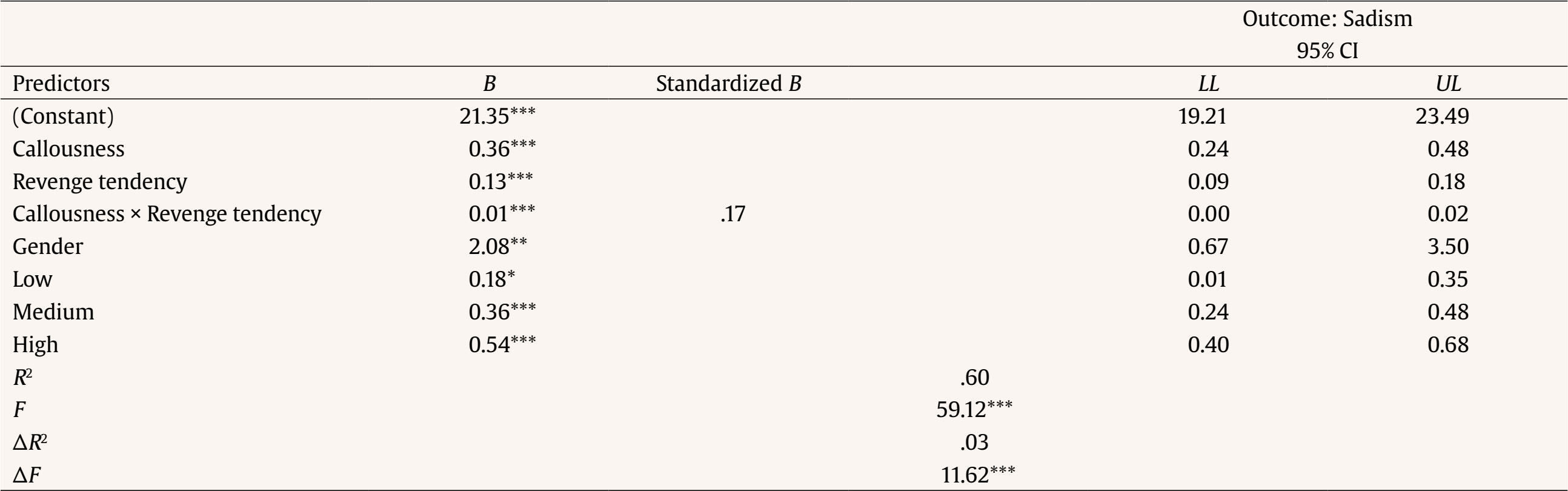 Correspondence: drsadiamalik13@gmail.com (S. Malik).Policing is a demanding profession that exposes officers to high-stress situations, frequent threats, and traumatic events. From restraining suspects to responding to crises, police constables must make rapid decisions under pressure, often in volatile and dangerous environments. The nature of police work not only necessitates psychological resilience and emotional regulation but also places officers at risk for maladaptive coping mechanisms. Research has shown that certain personality traits, such as emotional stability, conscientiousness, and resilience, facilitate effective adaptation in high-pressure occupations (Anshel, 2000; Salters-Pedneault et al., 2010). However, the same occupational stressors may also contribute to the development of maladaptive traits and behaviors, including emotional numbing, reduced empathy, and antisocial tendencies (Andersen & Papazoglou, 2015; Violanti et al., 2017). Callous-unemotional (CU) traits, characterized by a lack of empathy, remorse, and emotional sensitivity, have garnered attention as psychological constructs relevant to the behavioral functioning of police officers. These traits are core components of psychopathy and are established risk factors for the development of antisocial behavior (Frick & White, 2008). While CU traits have been primarily studied in clinical or juvenile populations, their manifestation in occupational settings, particularly in law enforcement, warrants further exploration. The psychological toll of repeated exposure to traumatic events, including violence, public hostility, and loss of life, may contribute to emotional desensitization and the reinforcement of CU traits among officers (Bakker & Heuven, 2006; Lucas et al., 2012). CU traits are associated with a range of antisocial outcomes, including sadism and schadenfreude. While often conflated, these constructs represent distinct psychological phenomena. Sadism refers to the deliberate infliction of psychological or physical harm to derive pleasure, control, or satisfaction (O’Meara et al., 2011). In contrast, schadenfreude involves passive enjoyment or amusement at another person’s misfortune, typically in the absence of personal involvement in the harm (Ben-Ze’ev, 2014). Although both are linked to reduced empathy, sadism involves active engagement in harmful acts, while schadenfreude reflects emotional detachment and pleasure from observation (Porter et al., 2014). Evidence suggests that individuals with elevated CU traits display impairments in emotion recognition, particularly for distress-related emotions such as fear and sadness, contributing to both sadistic tendencies and schadenfreude (Dawel et al., 2012; Erzi, 2020). Subclinical sadists, in particular, demonstrate a proclivity for cruelty, often pursuing harmful actions for intrinsic enjoyment rather than instrumental gain (Buckels et al., 2013). These individuals may even incur personal costs to inflict suffering, highlighting the severity of sadism as a form of interpersonal dysfunction (Campbell et al., 2004). Tendencies towards revenge may also mediate the interplay between CU traits and stress exposure. Revenge, defined as a motivated attempt to harm someone in response to perceived wrongdoing, differs from justice-oriented punishment in its emotional reactivity and personal nature (Yoshimura, 2007). While revenge can momentarily restore perceived fairness, it often perpetuates cycles of aggression and impairs emotional wellbeing (Zaibert, 2006). In some cases, sadistic behavior may be driven by revenge motives, particularly among individuals with high hostility or emotional dysregulation (Millon, 2011). Moreover, schadenfreude can serve as a form of “imagined revenge” when direct retaliation is not feasible (Leach & Spears, 2008), reflecting a passive outlet for unresolved grievance. Given the emotionally charged and adversarial nature of law enforcement work, Pakistani police constables operate in a unique sociocultural and occupational context that may exacerbate or shape the manifestation of these traits. High workloads, limited institutional support, and exposure to violence may intensify the expression of CU traits and associated behaviors (Forero et al., 2009). Understanding the potential moderating role of revenge in the relationship between CU traits, sadism, and schadenfreude is particularly important in this setting, as these psychological factors could influence officers’ ethical decision-making and interpersonal conduct. The current study investigates the influence of CU traits on schadenfreude and sadism among Pakistani police constables, with a specific focus on the moderating role of revenge tendencies. By contextualizing these relationships within a high-stress occupational environment, this study aims to advance our understanding of the psychological mechanisms underlying antisocial behavior in law enforcement. Furthermore, it seeks to inform the development of targeted interventions to promote emotional regulation, empathy, and ethical behavior among police personnel. Procedure Following approval from the relevant authorities, data collection for this study involved paper-based surveys distributed to police constables across various districts. To ensure informed participation, researchers first established rapport with potential participants by explaining the study’s purpose. Those who expressed interest then provided written informed consent before completing the questionnaire. Confidentiality of participant information was a primary concern, and researchers assured participants that their data would be used solely for research purposes. The questionnaire included demographic information and instructed participants to answer honestly and completely. Following these ethical procedures, data collection commenced from participating constables. Data and Sample A total of 217 police employees from the Punjab Police forc