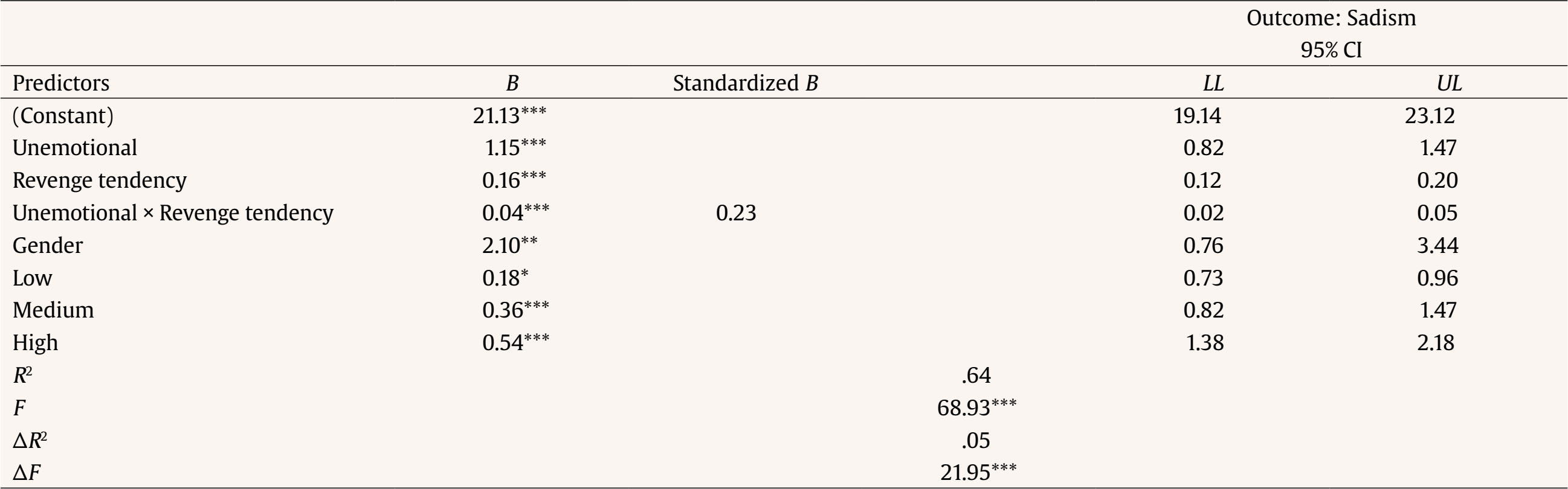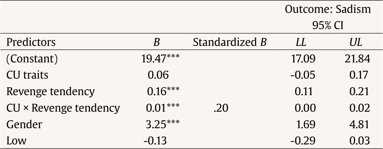 Rasgos de insensibilidad emocional, Tendencia a la venganza, Schadenfreude, SadismoKeywords