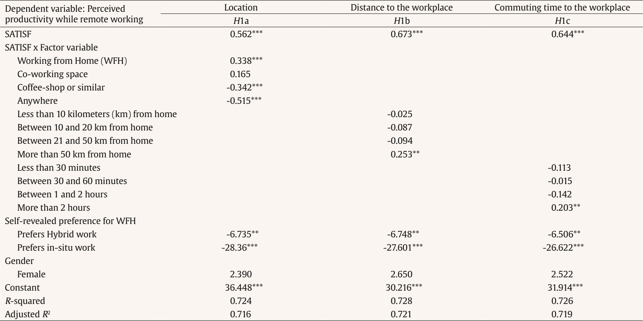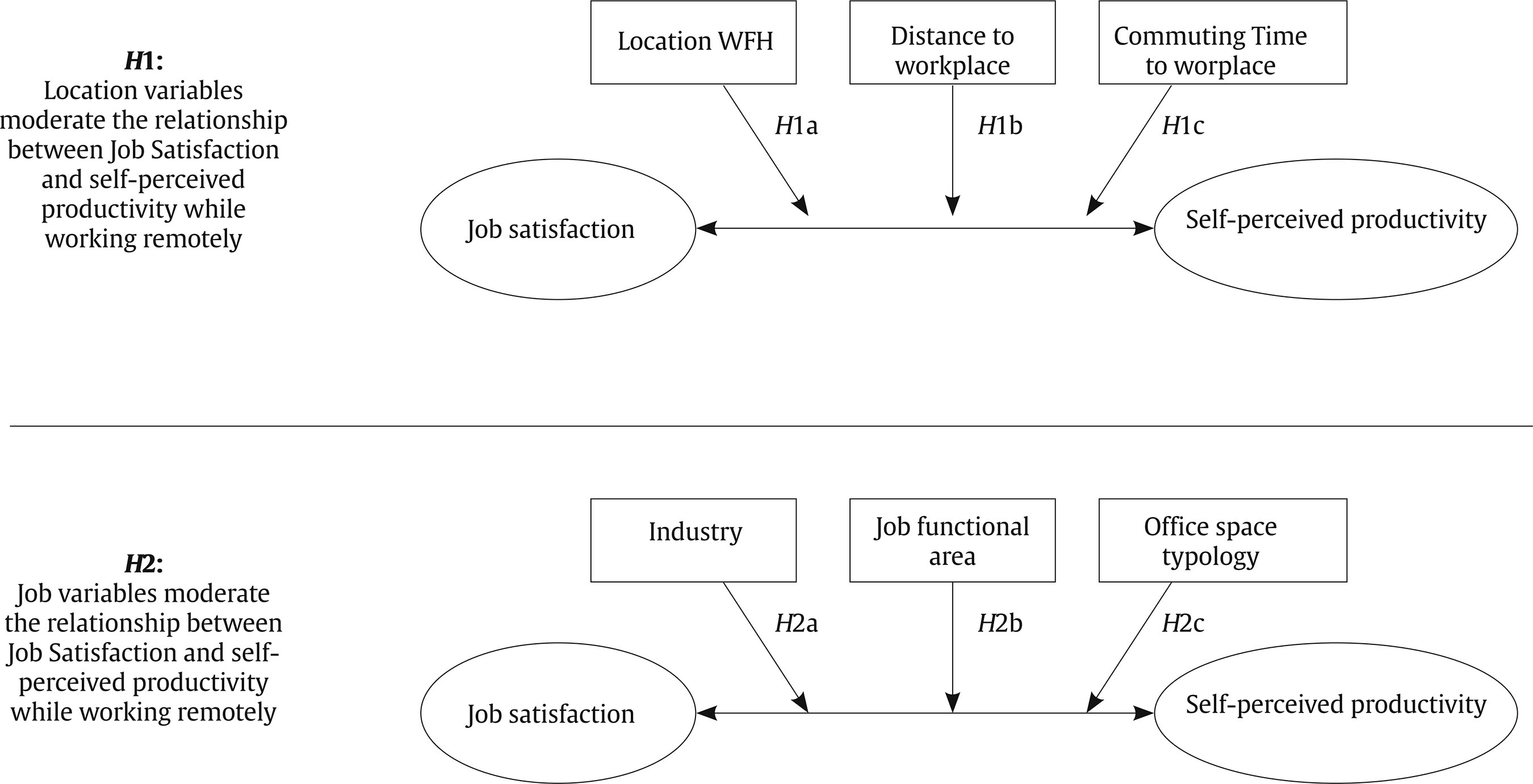 Correspondence: e.delcastillo@tec.mx (E. del Castillo).Teleworking or working from home (hereafter referred to as WFH) (Graizbord, 2015; Itam & Warrier, 2024) has been broadly defined as “an alternative work arrangement in which employees perform tasks elsewhere that are normally done in a primary workplace, for at least some portion of their work schedule, using electronic media to interact with others inside and outside the organization” (Gajendran & Harrison, 2007, p. 1525). The International Labor Organization argues that teleworking is a subcategory of working remotely that relies on information and communication technologies (Barriga Medina et al., 2021). Regardless of how one chooses to label it, the social distancing measures brought about by COVID-19 have propelled the adoption of teleworking worldwide (Thompson et al., 2022). Notwithstanding recent meta-analytic findings (Gajendran et al., 2024) suggesting minor but beneficial effects of telework, critics find that the business case for telework remains weak (Hackney et al., 2022). For instance, large corporations like Amazon and Dell have decreed that their employees need to “go back to the office,” where they believe employees are most productive (Hirsch, 2024). Prior research published in this same outlet has suggested that the positive effects of telework are mediated through employee well-being (Martinolli et al., 2023). However, we argue that, under certain circumstances, the fact that employees are satisfied with their telework arrangement does not necessarily guarantee that they also feel that they can be fully productive while teleworking. In this respect, we aim to make an incremental contribution to the literature by uncovering precisely those circumstances in which employees’ satisfaction with teleworking does not necessarily accompany the perception of being productive. Our study was conducted in one of the world’s most traffic-congested urban areas, specifically Mexico City, where many employees have understandably expressed a desire to continue teleworking at least once a week even after the COVID-19 pandemic ended (Lara-Pulido & Martinez-Cruz, 2023). Unlike prior research, and instead of attempting to uncover the main effects of telework on either job satisfaction or employee productivity, we specifically focused on the moderators or third variables that bound the relationship between employee satisfaction with telework and self-perceived employee productivity. Moderation analysis focuses on whether the relationship between two variables varies under different conditions. In our case, uncovering moderators of the telework satisfaction-productivity relationship should provide critical insights into the circumstances under which those who are satisfied with their telework arrangement are also likely to feel most productive and not just satisfied with a telework arrangement that might impede their productivity. Indeed, prior research conducted in non-remote work settings has shown that satisfied employees are not always the most productive (Judge et al., 2001). The same thing is probably true when teleworking: certain third variables would moderate the relationship between satisfaction with telework and self-perceived employee productivity because satisfied teleworkers do not always feel they can be productive by teleworking. Uncovering these moderating circumstances was the object of our study and it should prevent misunderstandings in situations where satisfied teleworkers should not be assumed to be productive. At the outset, we should clarify why we chose to focus on job productivity rather than on job performance. The latter typically refers to goal-related behavior, a primarily psychological concept. As Campbell and Weinik (2015) noted, performance must be distinguished from the outcomes of performance (e.g., sales volume), which are influenced by external factors in addition to the individual’s performance. Productivity, on the other hand, typically refers to the efficiency of production, and it is primarily an economic concept. Productivity is expressed as a ratio of aggregate output (i.e., output per unit of input). We felt that capturing teleworkers’ perception of productivity or the extent to which their efforts or inputs brought about a proportional amount of results or outcomes fit our research goal best, because we were interested in uncovering circumstances where telework hampers employee productivity. Our focus on self-perceived productivity also warrants explanation. Self-perceived productivity might not perfectly correlate with more objective productivity measures, but it should capture the circumstances under which those who telework are likely to hold a positive attitude that leads them to feel productive (Judge et al., 2001). Attitudes serve as guidelines and facilitators of behaviors (Fishbein & Ajzen, 1974). As stated by Eagly and Chaiken (1993), “In general, people who evaluate an attitude object favorably tend to engage in behaviors that foster or support it, and people who evaluate an attitude object unfavorably tend to engage in behaviors that hinder or oppose it (p. 12)." We theorized that two types of contextual factors would moderate the job satisfaction-self-perceived productivity relationship: (1) factors related to the alternate location in which the job would be performed if it were not performed from home (alternate location determines the commuting time and, therefore the amount of personal resources to be conserved through telework compared to working at the office) and (2) factors related to the nature of certain occupations that make face-to-face interactions critical for successful productivity because such face-to-face interactions are precluded or at least less than optimally performed when WFH. For the first contextual factor, commuting time, we grounded our hypotheses on the conservation of resources (COR) principle inherent in COR theory (Halbesleben et