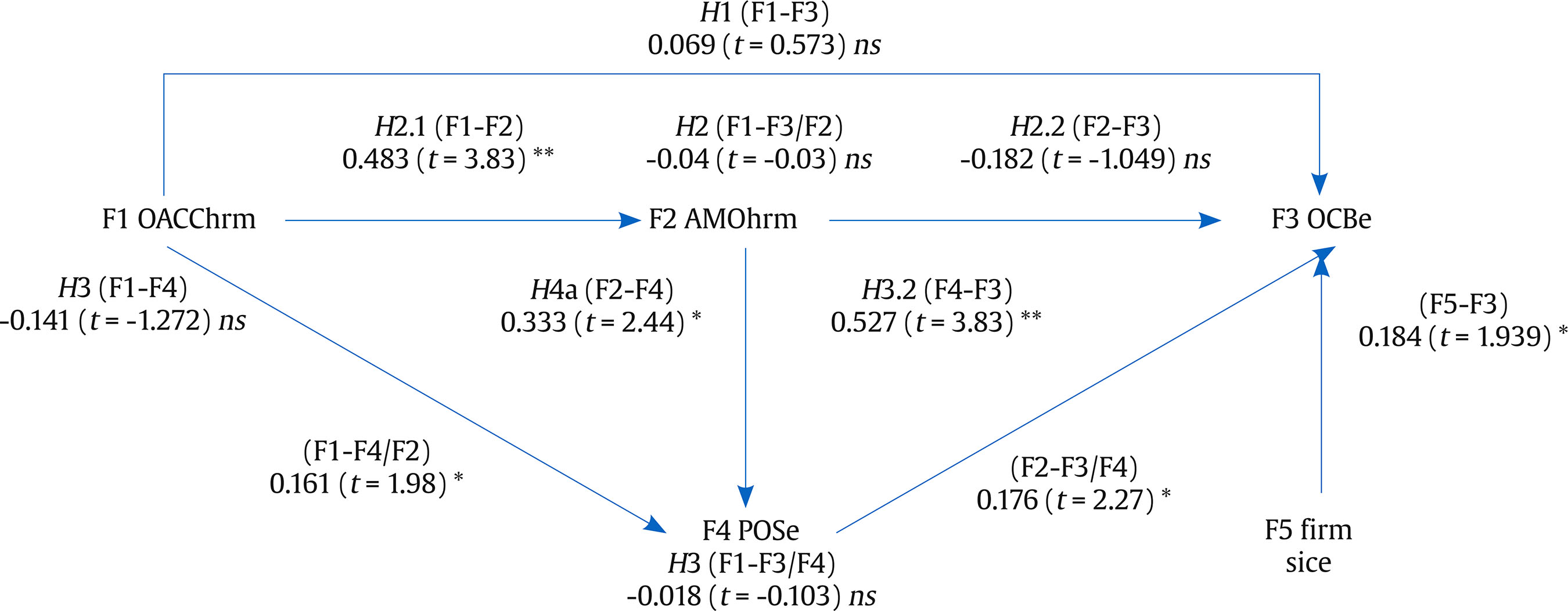 El objetivo de este estudio consiste en analizar la asociación entre el compromiso afectivo de la organización y el comportamiento ciudadano organizativo. Considerando que esta asociación pudiera ser indirecta, proponemos el modelo HMO [habilidades, motivación y oportunidades] y la percepción de apoyo de la empresa como variables mediadoras. Utilizando una muestra de 102 directores de RRHH y 306 representantes sindicales de hoteles españoles, observamos que esta asociación no es directa sino indirecta y se produce a través de dos efectos de mediación secuenciales: (1) el modelo HMO media entre el compromiso afectivo de la organización y la percepción de apoyo organizativo y (2) la percepción de apoyo de la organización media entre el modelo HMO y el comportamiento ciudadano organizativo. En resumen, el compromiso afectivo de la organización por sí solo no es suficiente para impulsar el comportamiento ciudadano organizativo. Las empresas deben traducir su compromiso afectivo en acciones positivas (a través del modelo HMO), que sean realmente percibidas por los empleados.