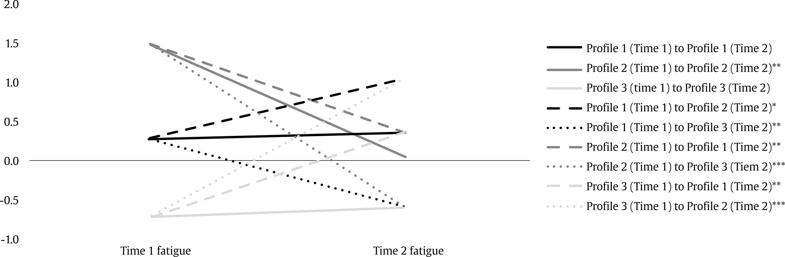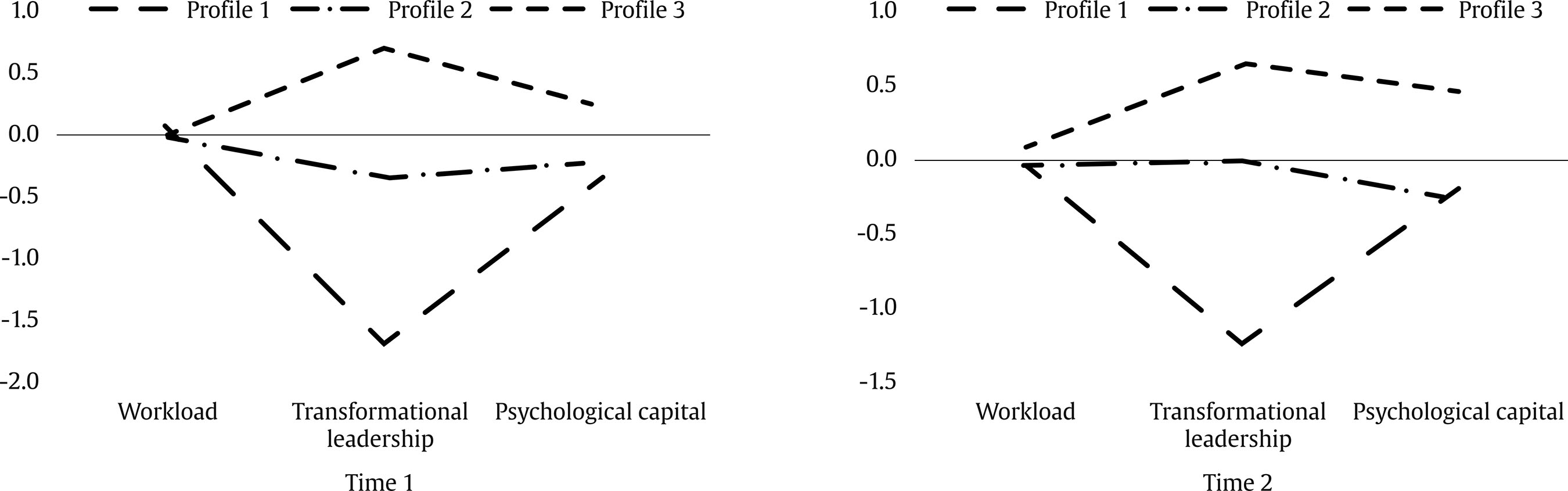 Correspondence: mpulido@ujaen.es (M. Pulido-Martos).The latest overview report of the European Working Conditions Survey (Eurofound, 2017) suggests that 35% of European Union workers suffer from work-related fatigue, and research shows high prevalence rates in specific occupations such as nursing and information technology technicians (Younan et al. 2019; Zheng et al., 2023). Therefore, it is considered a relevant variable in the work context. Fatigue is a multidimensional construct (Winwood et al., 2005) defined by a reduction in the functional capacity of physical, mental, and emotional resources, with an intense feeling of exhaustion, which is experienced both during and at the end of the workday (Frone & Tidwell, 2015). Research across workplaces demonstrates that different types of fatigue (from acute fatigue to chronic fatigue; Winwood et al., 2005) can lead to significant consequences, including decreased performance (Jalali et al., 2023), increased risk of injuries (Cunningham et al., 2022), and adverse health outcomes (Knoop et al., 2021). Several studies have found that fatigue results from job demands (Garrick et al., 2014; Rietze & Zacher, 2022). According to the job demands-resources theory (JD-R; Bakker & Demerouti, 2017), job demands are physical, social, and organizational aspects of the job requiring effort or skills involving psychological and/or physiological costs to the employee, harming their health or leading to burnout. Job demands (e.g., workload, work pressure, or emotional demands) are the main predictor of the exhaustion component of burnout (Bakker et al., 2004), with workload being a fundamental aspect of these demands. Specifically, fatigue is an outcome of effort expenditure related to workload (Cho et al., 2022; Rietze & Zacher, 2022), which in the domain of occupational stress is equated with job demand (MacDonald, 2003). In addition, the JD-R theory (Bakker & Demerouti, 2017) also considers that employees possessing sufficient personal and/or job resources may encounter high demands not experiencing high levels of fatigue, stress, or exhaustion (e.g., Cao et al., 2020; Cho et al., 2022; Rietze & Zacher, 2022). From this framework, job and/or personal resources should be considered alongside demands to understand fatigue development. In the case of personal resources, such as psychological capital (PsyCap), they allow dealing with the situation more effectively (Grover et al., 2018). PsyCap refers to the collection of personal psychological resources that encompass positive psychological states, such as hope, resilience, self-efficacy, and optimism, playing a crucial role in shaping an individual’s attitudes, behaviours, and performance (Luthans et al., 2015). PsyCap has shown a negative association with fatigue and mediates the association between job stress and fatigue (Tian et al., 2020), while a job resource, such as adequate leadership, can interact with workload to help prevent and mitigate worker fatigue, through adequate supervision, balancing, and distribution of workloads (Cho et al., 2022). Indeed, a transformational leader (TFL) develops an environment where employees are motivated and energized and helps them reach goals with high standards (Antonakis et al., 2003). This TFL can result in fewer job demands and more job resources (Fernet et al., 2015), also reducing emotional exhaustion and burnout (Hildenbrand et al., 2018). However, while most research uses a variable-centered approach, they ignore the potential profiles of employees with different levels of personal demands and work resources and lack a longitudinal perspective. In this vein, considering a person-centered approach would allow the examination of the combination and management of more than two variables (TFL, workload, and PsyCap in this study) that could be difficult to address through the traditional variable-centered approach (Morin et al., 2020), identifying profiles of workers through patterns of variables and comparing them with other identified profiles (Spurk et al., 2020). From a person-centered approach, and considering the JD-R theory (Bakker & Demerouti, 2017), several studies have focused on identifying these demand-resource profiles and their relationship with other outcomes related to well-being, job satisfaction, or a set of work capabilities. In this regard, Cortés-Denia et al. (2024) found that TFL determined the probability of pertaining to a more positive profile and, therefore, to higher workers’ health. Furthermore, Lee and Cho (2020) identified four profiles differentiated by the job and personal resources (i.e., co-worker and supervisor support, self-esteem, optimism, and active coping), but no differences were found in job demands among the profiles, which differ from other studies (Barnard et al., 2023; Marzocchi et al., 2023; Pulido-Martos et al., 2023). Particularly, Marzocchi et al. (2023) found combinations of different demands (i.e., workload, emotional dissonance, and patient and physical demands) and resources (i.e., management and peers’ support, and control). These combinations yielded four identified profiles on worker satisfaction, whereas the profiles (about job demands of challenge, emotional and hindrance, and several resources) identified by Barnard et al. (2023) were related to a work capability set (i.e., using and developing knowledge and skills, setting own goals). In this vein, Pulido-Martos et al. (2023) found that personal resources (emotional intelligence, vigor, and self-efficacy) and demands (effort at work and overcommitment) were related to well-being, but the number of profiles increased to five. Despite attempts to identify profiles and the variability of demands and resources addressed, to date no studies have proved the implications of the demands-resources on fatigue from a person-centered approach. Additionally, two self-reinforcing personal strategies are included in the original theory that may change the p