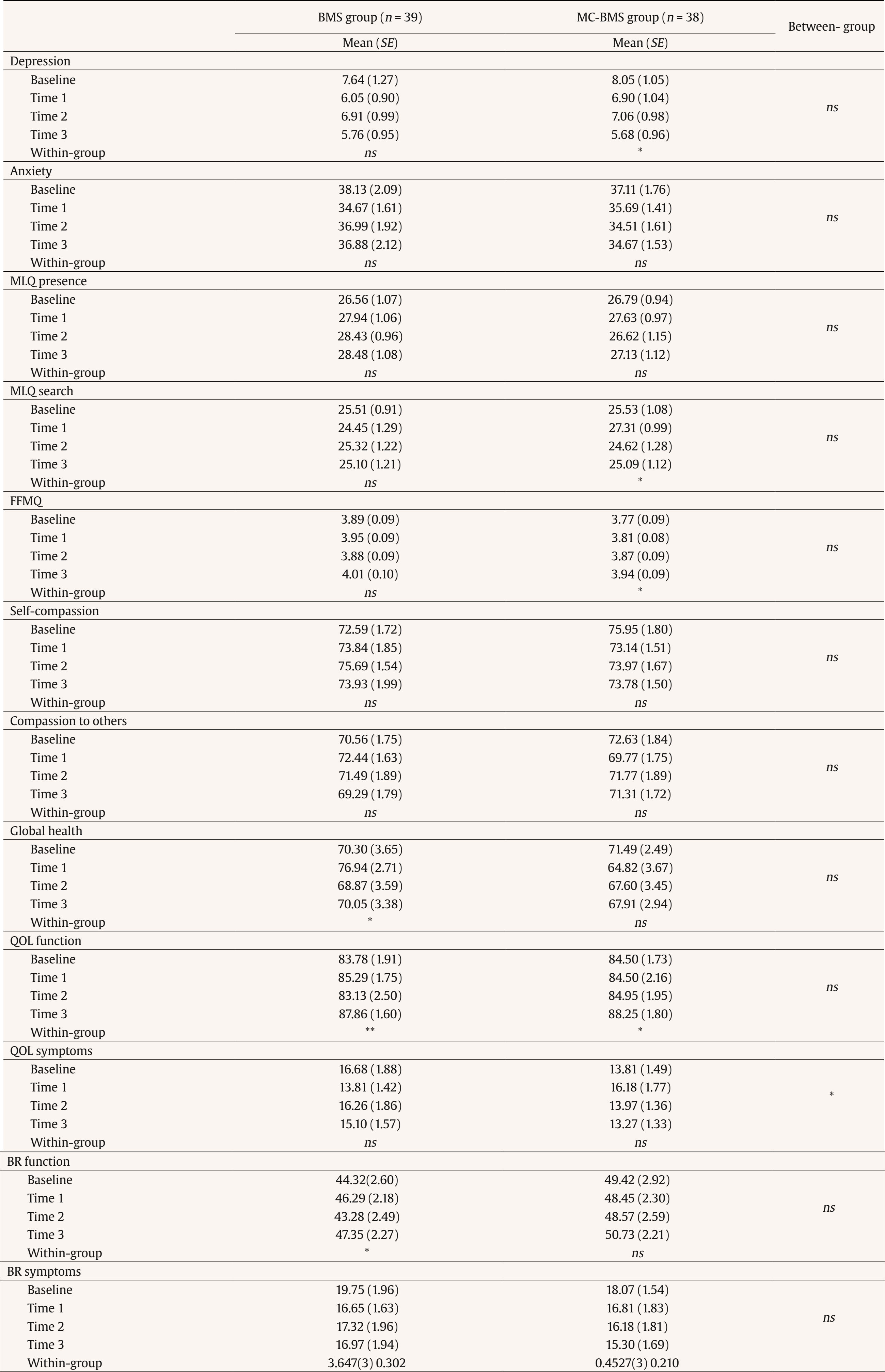Cite this article as: Hsiao, F., Lo, C., Huang, C., Kuo, W., Huang, F., Chen, Y., & Hsieh, C. (2026). Mediating Effects of Mindfulness Compassion-based Peer Counseling Program for Breast Cancer Survivors: From Mindfulness, Compassion to Others to Depression Reduction. Psychosocial Intervention, 35, Article e260814. https://doi.org/10.5093/pi2026a6