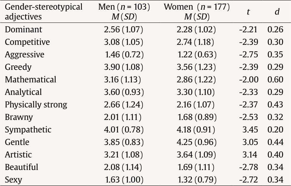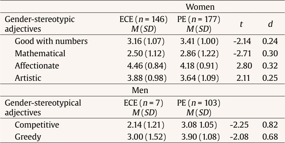 Correspondence: Borja.romero@uva.es (B. Romero-Gonzalez).Traditionally, stereotypes have reflected the general expectations that exist in the overall imagination about certain social groups (Ellemers, 2017). Therefore, stereotypes are traits based on categories that are usually applied to a group of people because of beliefs that have been accepted and which generate expectations about the behavior of the members of that group (Agars, 2004; Kite et al., 2008; Suárez et al., 2011; Welle & Heilman, 2007). Specifically, gender stereotypes refer to consensual generalisations about the characteristics of men and women (Cuadrado, 2007; López-Zafra & García-Retamero, 2021; Moya, 2004), which is reflected in the collective imagination (Morales Santana et al., 2024). Men and women stereotypes include all the culturally accepted characteristics, both physical and psychological, about the prototypical aspects of these two categories (López-Sáez, 1993). Consequently, it can be asserted that the categories formed around gender are quickly detected, contribute to the prevalence of such stereotypes, and are easily polarizable (Ellemers, 2014; Kite et al., 2008). Similarly, such gender stereotypes offer a very simplified view of reality, reinforcing the perceived limits between women and men, as well as role differentiation and social inequality (Kite et al., 2008). These stereotypes or culturally shared beliefs can be descriptive, that is, relative to the characteristics of women and men, or prescriptive, relative to the characteristics that women and men must or must not have (Cuadrado, 2007; Moya, 2004; Prentice & Carranza, 2002). Traditionally, the content of gender stereotypes has been labelled along with the concepts of “communion” and “agency”. On the one hand, agency would be reflected in the achievement of goals, in an introspective view of the self, and in a self-oriented focus (competitiveness, assertiveness, decisiveness, ambition). From this perspective, assertiveness is understood as a masculine trait, as women may feel guilty when defending their rights and may even be perceived as authoritarian and masculine. Various studies have suggested that in many cultures men are expected to be assertive, while women are expected to be obedient. This fact imposes a limit on the expression of assertiveness in women (Dumanli & Esen, 2023; Lease; 2018; Manian & Sheth, 2021). On the other hand, communion, or the notion of communality, would refer to social functioning, well-being, and an orientation towards others and their welfare (affection, dependence, concern for others, compassion, warmth, expressiveness (Eagly & Karau, 2002; Eagly et al., 2020; Eagly & Steffen, 1984; Sczesny et al., 2019; Williams & Best, 1982). Thus, men have traditionally tended toward a view focused on the agency concept, whereas women have been recognized within the communal aspect (Eagly et al., 2020). If we apply these issues to the workplace, gender stereotypes have defined the professional access of men and women as a function of the characteristics that are attributed to each gender, generating a clear segregation in the professional roles (Jarman et al., 2012). Thus, “assertiveness and performance” have been considered characteristic indicators of men, whereas “warmth and care for others” have been commonly attributed to women (Kite et al., 2008). These observations have been explained throughout the years, simply referring to inherent biological differences between the two sexes (Ellemers, 2014). In fact, there are notable differences regarding the fatherhood/motherhood factor. Several studies (Correll et al., 2007; Heilman & Okimoto, 2008; Lyness & Judiesch, 2014) affirm that motherhood constitutes a work-related grievance, as it is perceived that mothers’ work capacity is diminished due to the additional efforts that they invest in childcare. For instance, according to data gathered in Education at Glance, the official document published by the Organization for Economic Co-operation and Development (OECD, 2021), 40% of women vs. 25% of men aged 25-64 years mentioned their family responsibilities related to taking care of the children and elder in the household as barriers to their participation in adult learning and training programs. As is pointed out in some studies (Lippa et al., 2014), job positions are still greatly segregated by sex, with women being overrepresented in professions related to the development of social skills and caregiving (nursing, education, etc.) and underrepresented in professions related to science or technology and in managerial jobs. In the academic scope, males (boys/adolescents) usually show greater levels of interest for mathematics, whereas females (girls/adolescents) are rather interested in language (Frenzel et al., 2010; Graham et al., 2008; Marsh et al., 2005). Despite progress made toward increasing women’s interest and involvement in science, technology, engineering, and math (STEM), women continue to be underrepresented and experience less equity and inclusion in some STEM fields (Schmader, 2023). This differs significantly from the skills exhibited by girls and boys in earlier educational stages. Gender, Education and Skills 2023 Report on the Persistence of Gender Gaps in Education and Skills seeks to understand the contradiction in boys’ and girls’ achievements in relation to skills and their development. The OECD study shows that adolescent boys are generally less likely than girls to achieve a basic level of proficiency in reading, mathematics and science, and that higher achieving girls do not continue to invest in skills development in areas such as mathematics and science, compared to higher achieving boys. This results in the fact that, despite overall gender gaps in math and science being quite small, young women continue to be underrepresented in STEM (science, technology, engineering, and mathematics) fields after graduation (Encinas-Mar